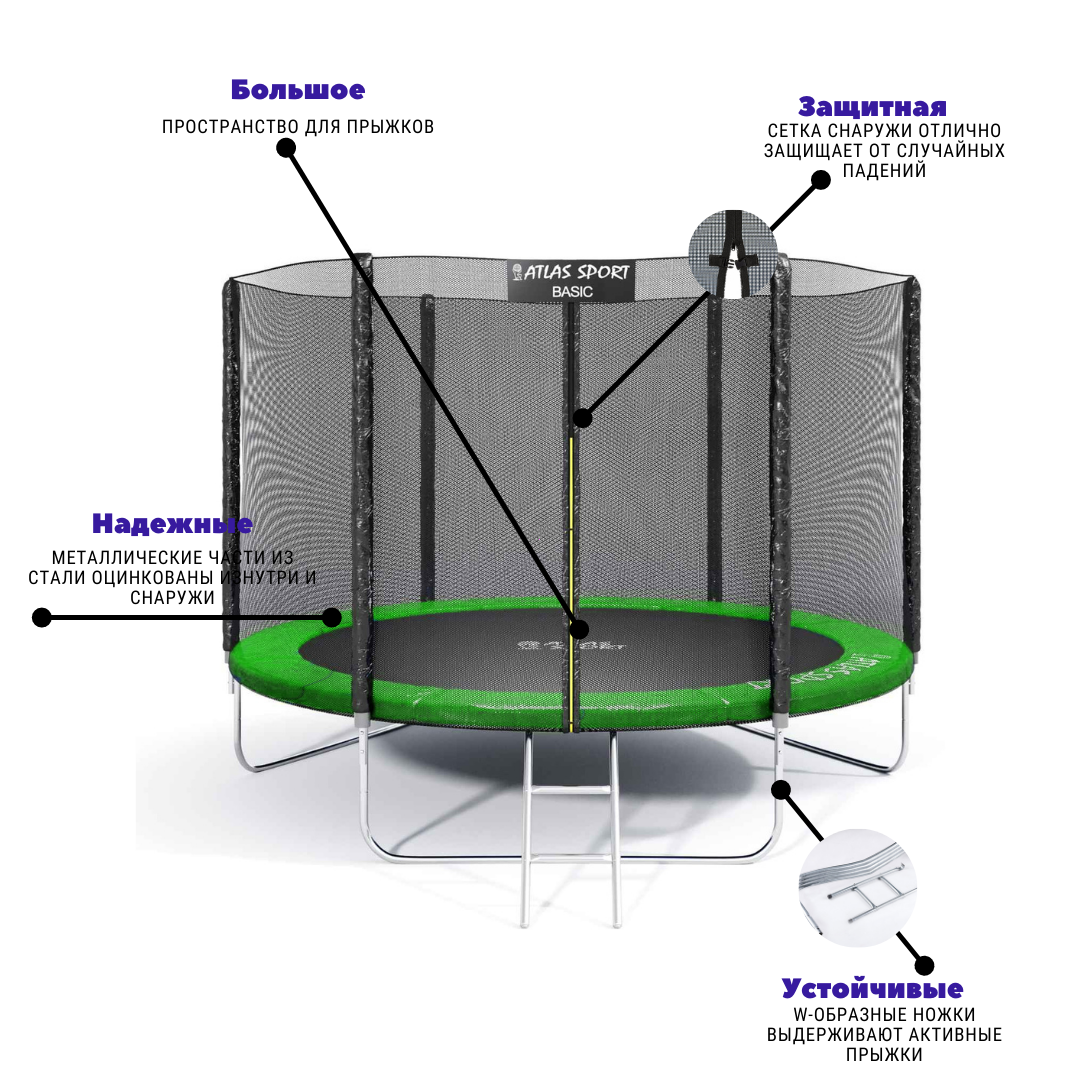 Батуты Atlas Sport изготовлены по современной технологии из высококачественных материалов, что обеспечивает надежность и безопасность, продуманные в каждой детали.