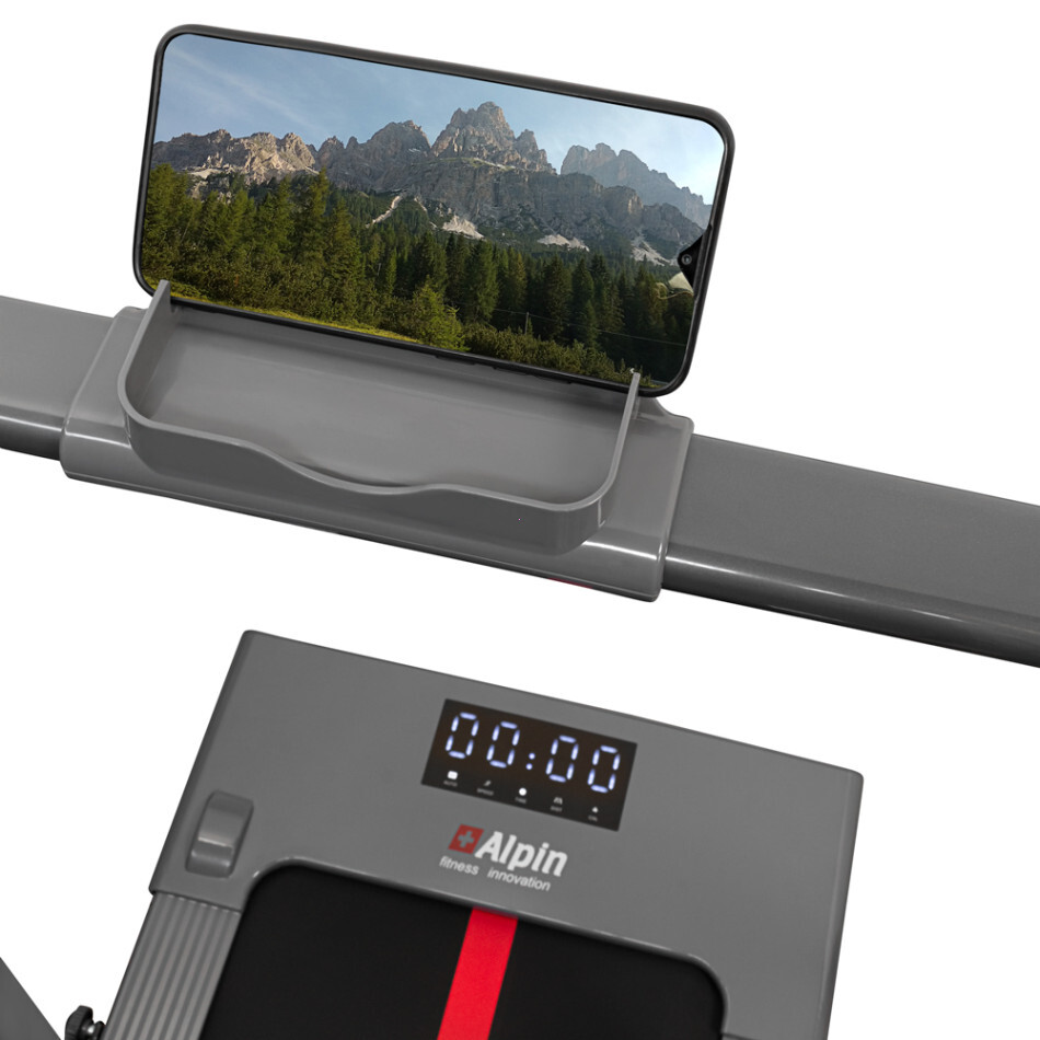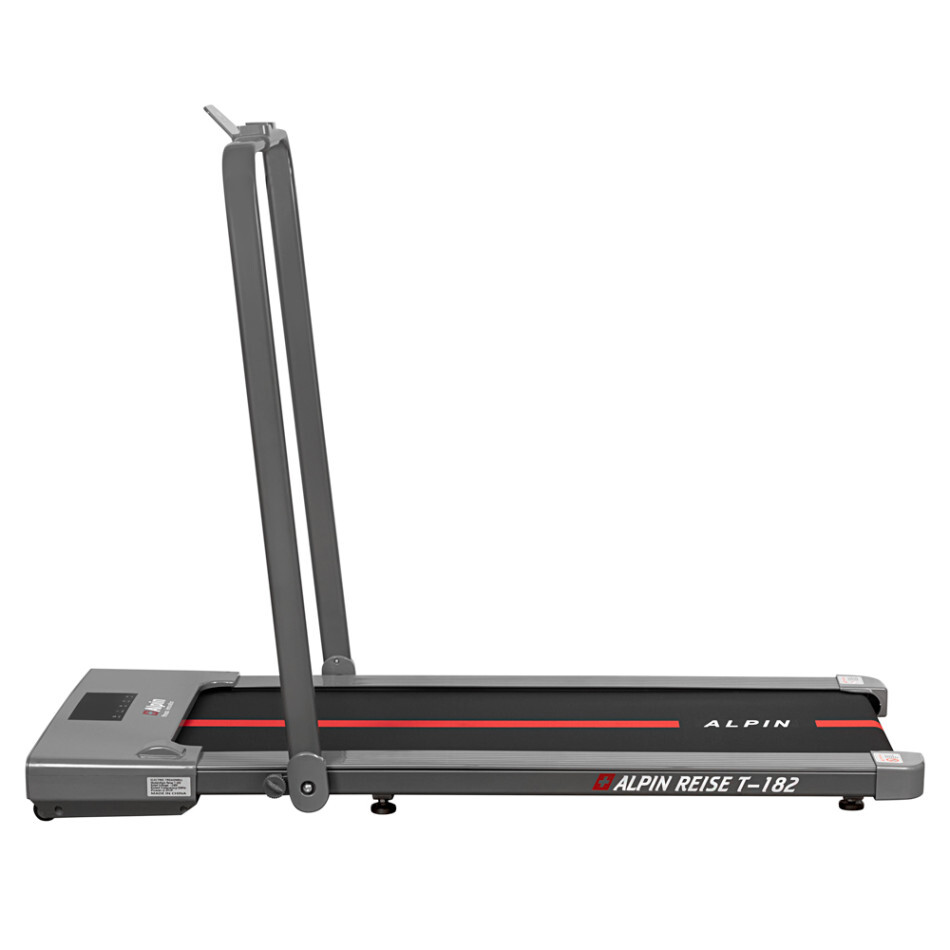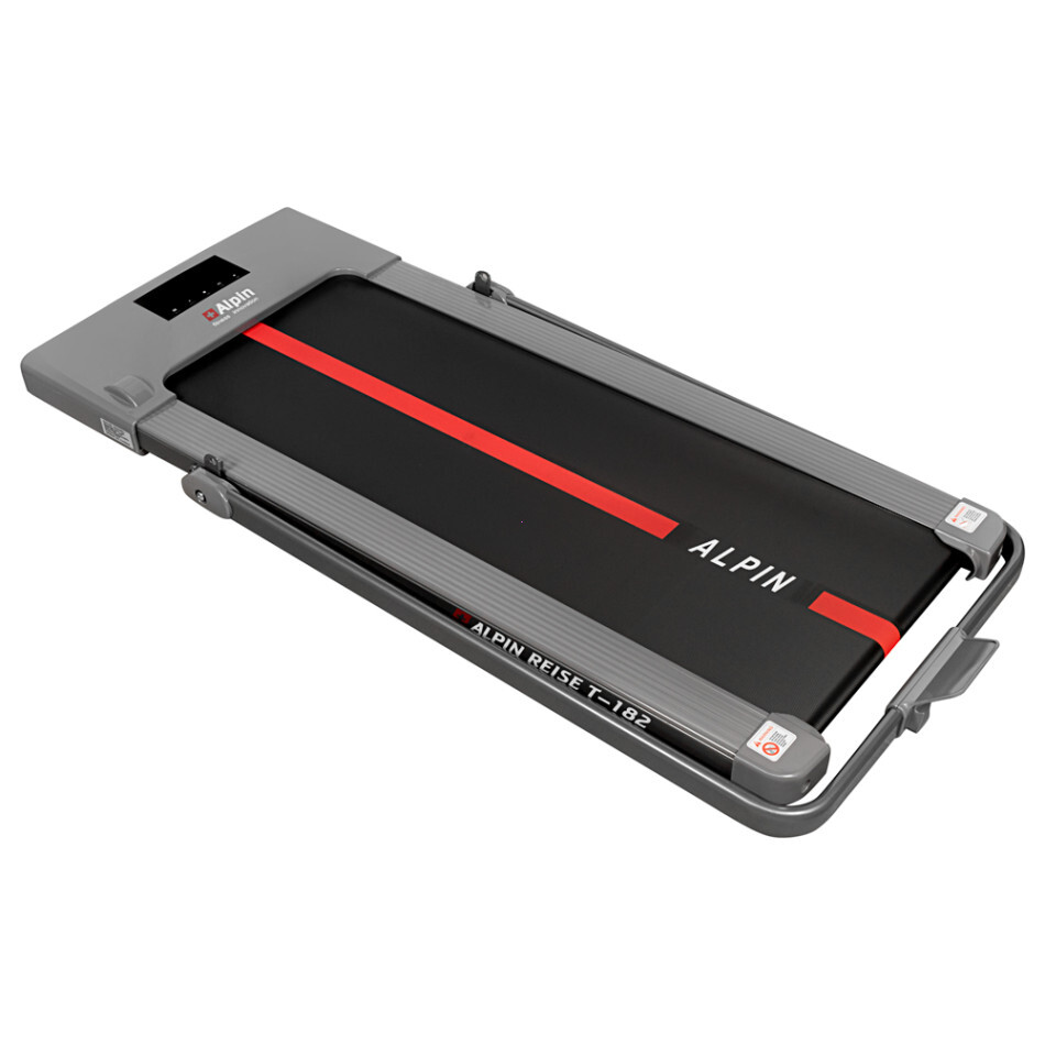 Alpin Reise T-182 – современная электрическая беговая дорожка, прекрасно сочетающая в себе просторное полотно, мощный двигатель, многофункциональный компьютер и разумную цену.