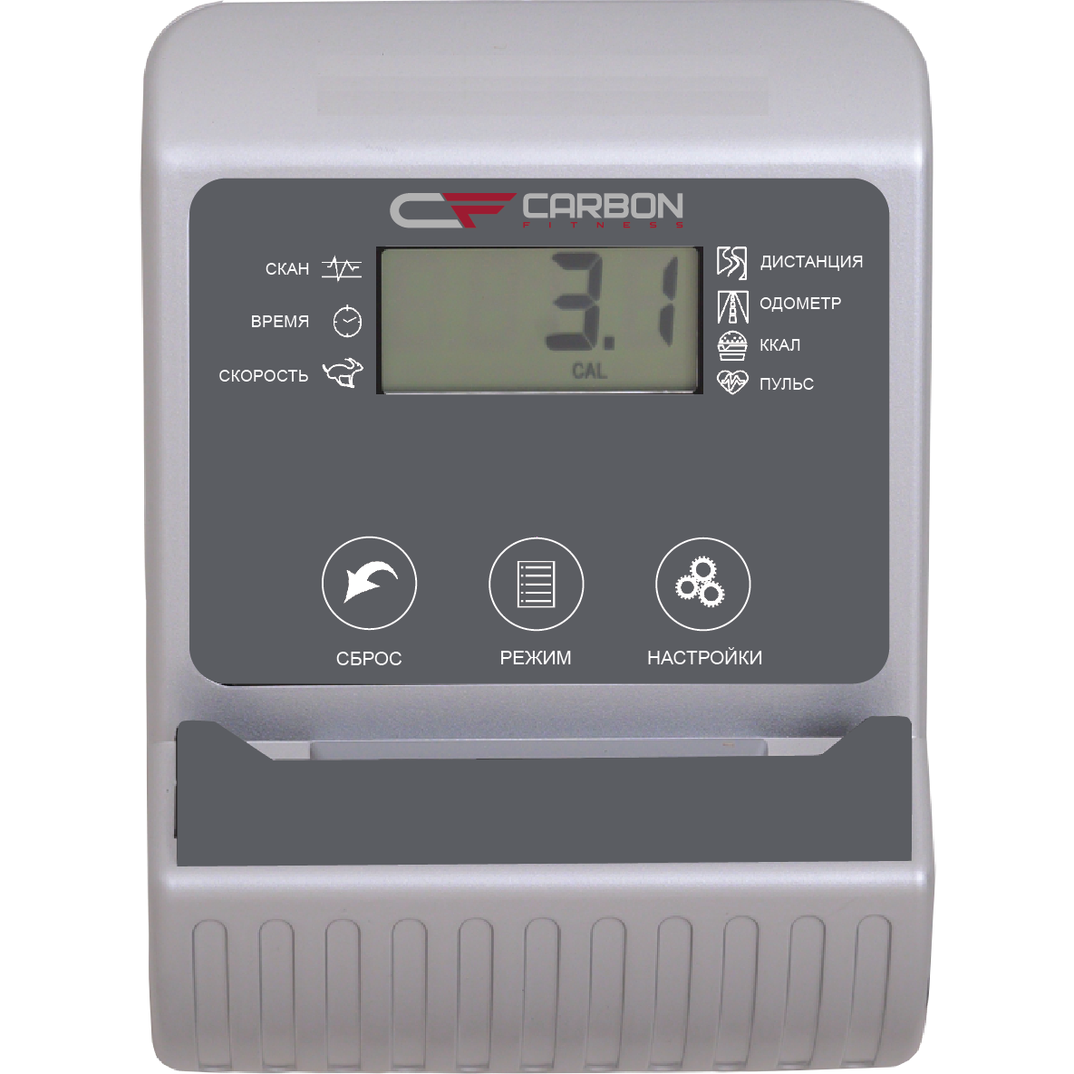CARBON FITNESS E109 - полнофункциональный среднеразмерный эллиптический эргометр с максимальным весом пользователя 110 кг. LСD дисплей с монохромной матрицей выводит все основные показатели: время, скорость, дистанция, расход калорий, пульс и одометр. Мягкий ход обеспечивается маховиком с собственным весом 5 кг. 4 тренировочные программы ориентированы на целевые тренировки по времени, дистанции, расходу калорий, пульсу. Из приятного бонуса - наличие подставки под смартфон для разнообразия тренировки. Плюс ко всему есть транспортировочные ролики и компенсаторы неровностей пола, что упростит перемещение тренажера по квартире и стабилизирует его.