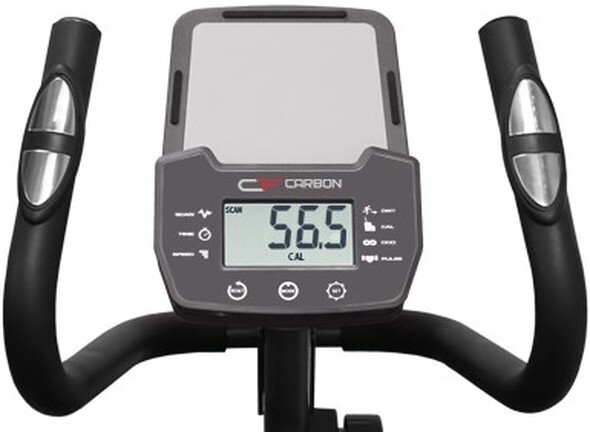 Другие параметры CARBON FITNESS F808 CF также несут массу полезного. Тренировочный компьютер представлен черно-белым LCD-дисплеем. На экран выводятся все основные параметры тренировки - время, дистанция, скорость, калории, одометр и пульс. Рифленые антискользящие педали увеличенного размера обеспечивают надежное сцепление. Благодаря компенсаторам неровностей пола можно легко выровнять положение эллиптического тренажера на неровной поверхности. Переместить F808 также не составляет большого труда - для этого предусмотрены транспортировочные ролики. Небольшой, но важной опцией является подставка под планшет или смартфон - это отличный способ справиться с однообразием тренировочного процесса.