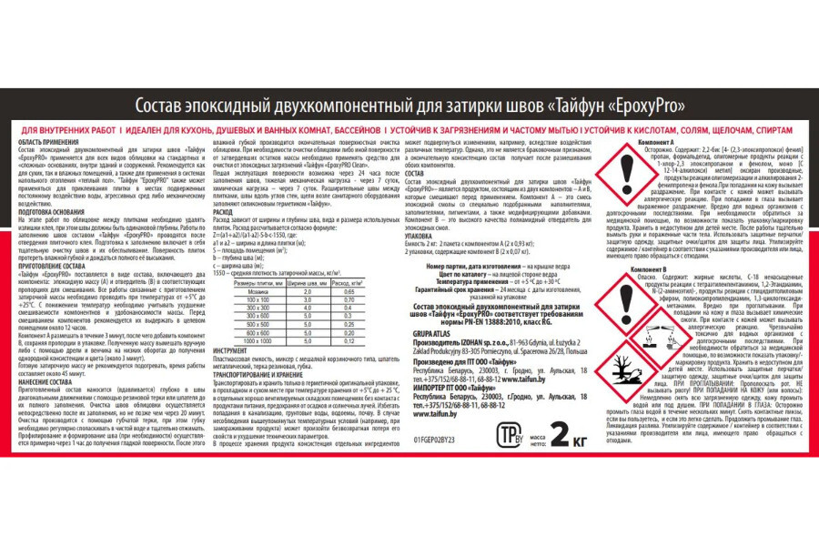 Эпоксидная двухкомпонентная водостойкая фуга (затирка) Тайфун EpoxyPRO для плитки 037 графитовый 2 кг — инновационное решение для безупречной отделки. Двухкомпонентная затирка для швов формирует монолитные соединения с рекордной прочностью 45 МПа. Состав на основе эпоксидной смолы и полиамидного отвердителя обеспечивает 100% гидроизоляцию и устойчивость к кислотам при плотности 1.55 г/см³.