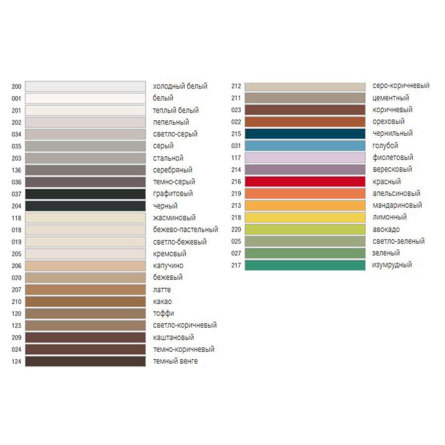 Фуга предлагается в 40 различных цветовых оттенках, гармонирующих с палитрой силиконовых герметиков "Тайфун". Данный продукт имеет темно-серый оттенок.