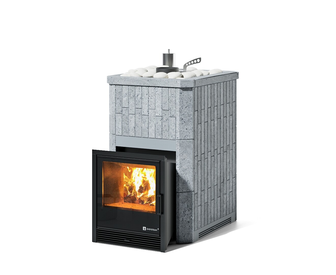 Южная - банная печь с уникальным узлом дожига дымовых газов , который обеспечивает более полное сгорание дров и и, как следствие, снижение расхода дров до 30%. Печь оснащена съемной закрытой каменкой, топка печи футерована шамотными плитами. В стандартную комплектацию печи входит индивидуально разработанный кожух из натурального камня толщиной 40 мм с регулируемой конвекцией.