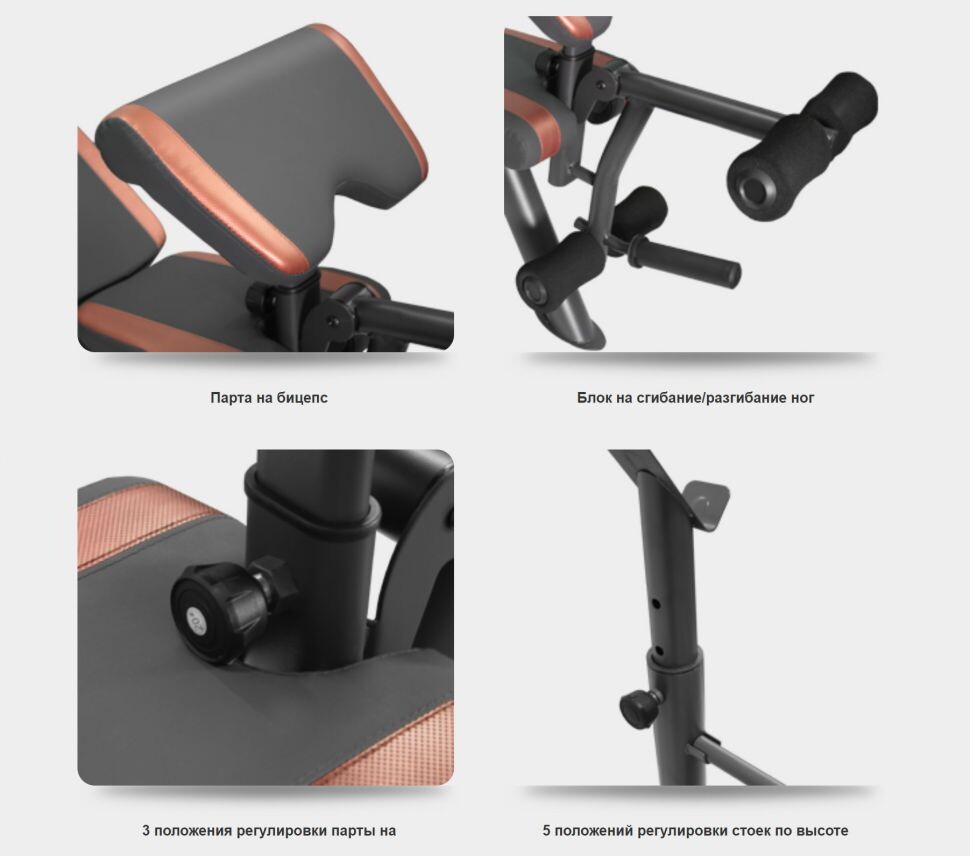 | Упражнения | жим штанги лежа, сведение/разведение гантелей лежа/сидя, сгибание ног лежа, разгибание ног сидя, биц |
