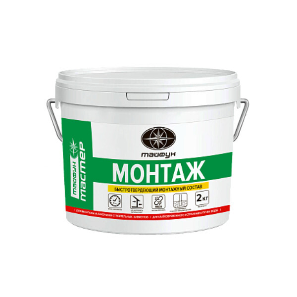 Состав быстродействующий Тайфун Мастер МОНТАЖ 2 кг предназначен для крепления стальных, железобетонных, полимерных строительных элементов на горизонтальных и на вертикальных поверхностях: