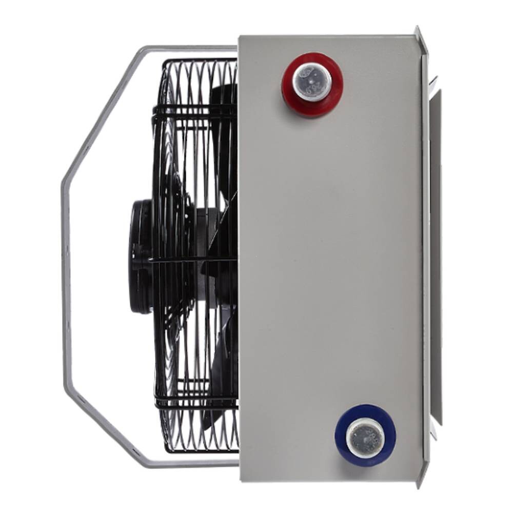 Водяной тепловентилятор устанавливается преимущественно на потолок при помощи кронштейна, который входит в комплект поставки. Выходная решетка в форме анемостата распределяет теплый воздушный поток в четырех направлениях.